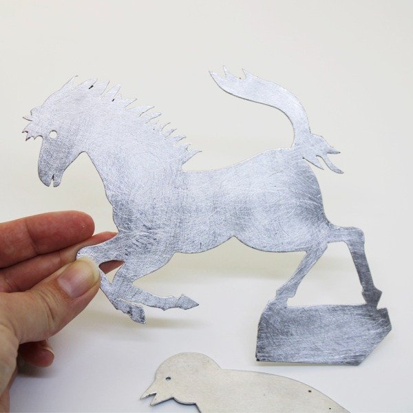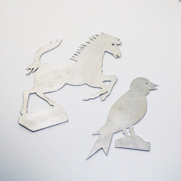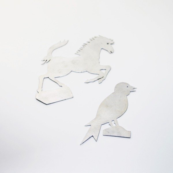 Medidas: pajaro: 9 cm ancho x 10 cm alto x 1 cm profundidad / caballo: 16 cm ancho x 11 cm alto x 1 cm profundidad
