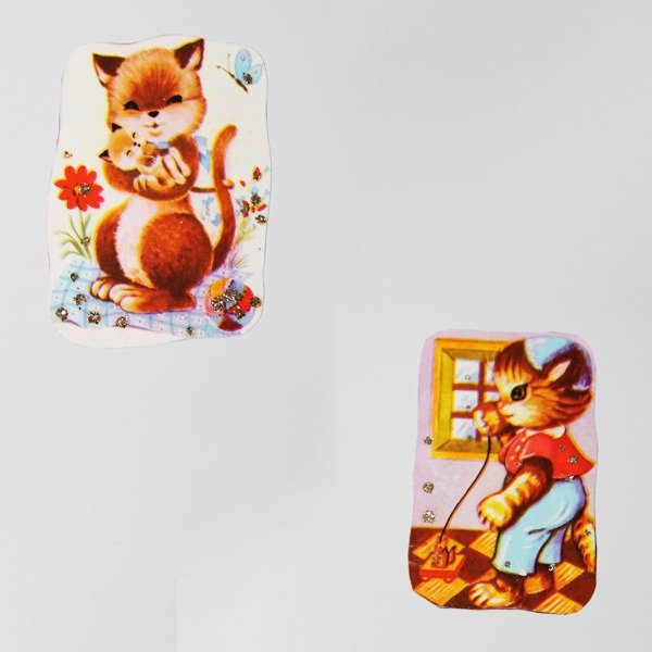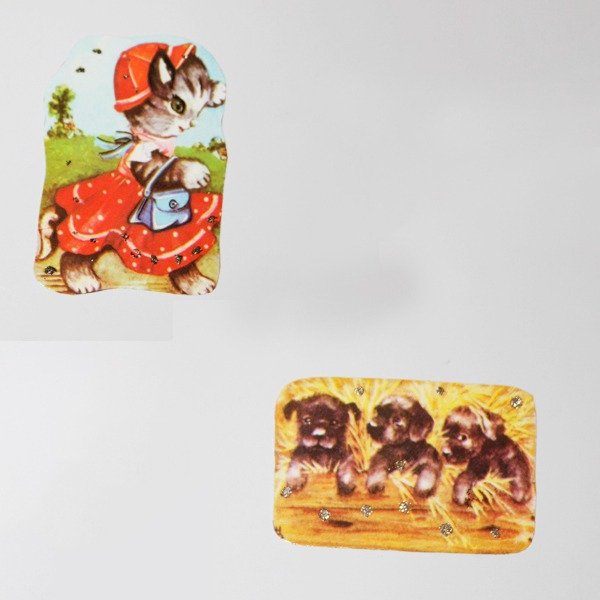 Material: figurita de papel sobre lamina fina de imán con detalles en brillantina cubierto de una capa de laca transparente
